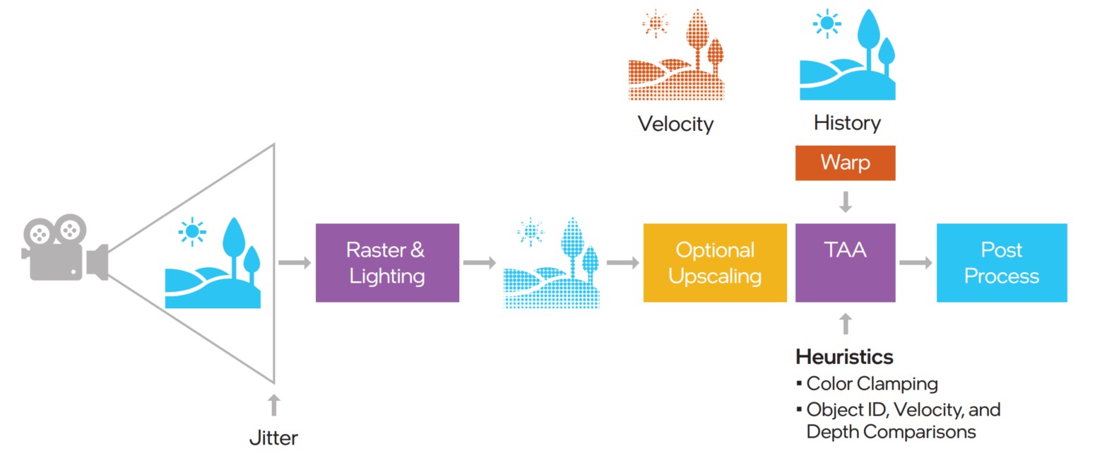 Figure 2. Flow chart of a typical rendering pipeline with TAA.